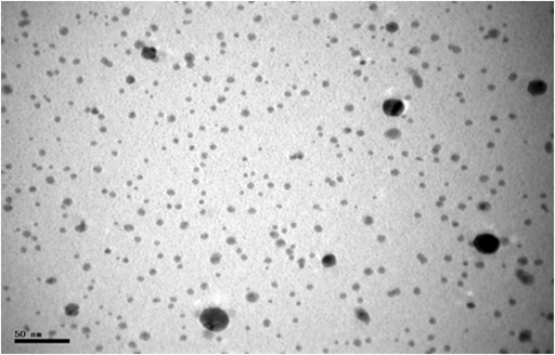 This study used colloidal silver nanoparticles (cAgNPs) which are commercially available in the Iranian Market. This commercial nanomaterial was chosen because we wanted to study on a material that is currently marketed and most likely is included in consumer products, and therefore can be relevant for future risk assessments. Detailed characterizations of this product can be found in our previous study.12 and are briefly shown in (Table 1). Figure 1 shows TEM image of the particles (prepared by Hitachi H-7100FA). Also the hydrodynamic diameter distribution of silver particles in colloid was measured by using NTA system (model LM10-HS) it was 63±24 nm.