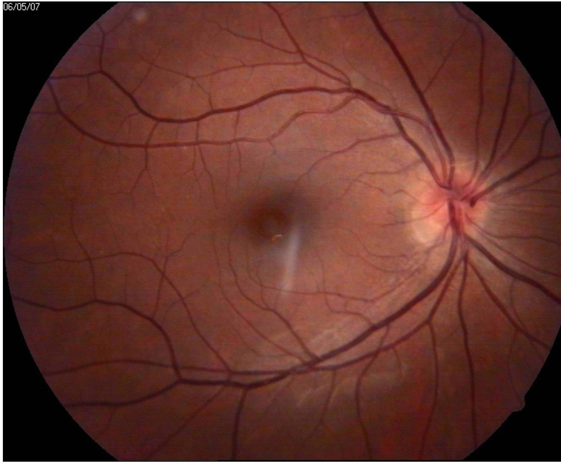 Female patient in her seventh decade of life with a history of post-surgical hypothyroidism due to surgically treated papillary thyroid cancer, bilateral cataract, and metastatic melanoma undergoing treatment with pembrolizumab every 21 days, who was admitted to the emergency department for rapid and insidious visual acuity deterioration up to blindness, associated with eye pain; to neurological assessment with bilateral lens opacity with bilateral amaurosis and the rest of the neurological examination without abnormalities, fluorescein retinal angiography of both eyes, which evidenced optic neuritis of the right eye (Figure 1), which a probable autoimmune phenomenon associated with paraneoplastic syndrome was suspected, versus adverse effect related to the immune system (irAE) due to pembrolizumab.