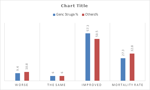 The outcome of the patients was studied comparing data with other colleagues (anonymised) in the same working unit. In consideration was taken outcome using NIHSS score when admitted and released from Intensive Neurovascular Unit. The data indicated favorable outcome in patients under Dr. Struga care concerning situation when released from working unit classified as “worse” 9.4% vs 10.8% , “the same” 6% vs 6%, “Improved “ 57.3% vs 50% and “mortality rate” 27.3% vs 32 .8 % as indicated in Table 2.