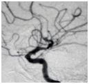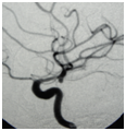 A 78 year-old woman suffering from hypertension was admitted on the seventh day. Undergoing drowsiness, right moderated hemiparesis and bilateral VI CN paresis and Glasgow Coma Scale (GCS): 10pts. On CT scan was categorized as grade III in Fisher scale and presented diffuse and dense cisternal clot with predominance on the left side. The angiogram showed bilateral carotid siphon aneurysms on posterior communicating artery (PComA) segment and vasospasm (Figure 1 and 2). The left PComA aneurysm was clipped, showing significant clinic evolution. According to the modified Rankin Scale (mRS) on the late sixth month follow up, the patient is graded 2 and fully recovers from the VI CN paresis at the same time.