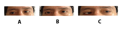 Figure 3 Ocular movement examination; A: right, B: front, C: left.