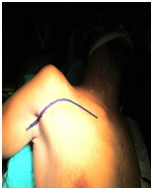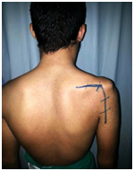 Figure 2 Marking of the skin in the posterior approach, notice the deltoid muscle (Suez Canal University Hospital, Ismailia, Egypt).