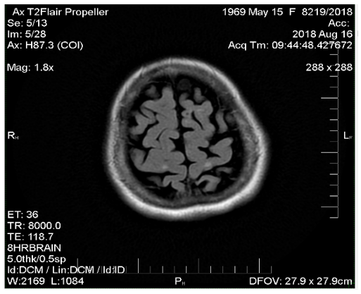 Comparing magnetic resonance recordings over time, it was determined that within a 10-year period, practically no new lesions had formed (Figure 1-3). Although the patient continues to experience some neurological interference, she remains active, fully functional, and independent. She travels frequently, has purchased a car, and drives herself. Her current neurological condition is characterized as mild paraparesis affecting the lower extremities and the right arm, yet she maintains mobility and autonomy. This review sufficiently covers her progress; no additional remarks are necessary. Conclusion stands on its own.