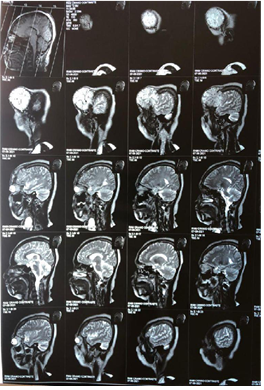 Figure 4A Contrast-enhanced magnetic resonance image showing a tumor in the extraaxial region of left frontal involvement in sagittal section.