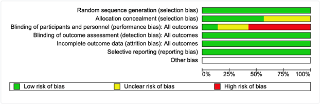 Quality of each study was assessed based on the Cochrane Handbook for Systematic Reviews of Interventions. Each of the items was scored as low risk, unclear risk, or high risk.