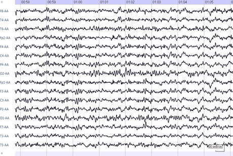 Electroencephalogram (EEG) showed epileptiform activity. An irregular alpha rhythm with a peak frequency of 10.5 Hz is recorded on the patient's EEG. The frequency-spatial structure of the alpha rhythm is pathologically distorted. The structure of the maximum values of average coherence is represented as a triangle in fronto-central departments, which is characteristic of an active epileptic process. A moderate increase in low diffuse beta and theta activity is noted. Against this background, in the left frontotemporal region, epileptiform activity in the form of spikes is recorded in large numbers, the frequency of which reaches 30 per minute. Rare discharges of high, sharp, bilaterally synchronous alpha waves with a frequency of 1-2 per min (Figure 1 & 2).