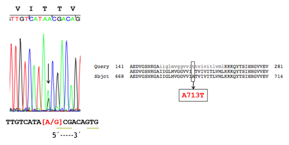Conclusion: The A713T mutation has been reported by groups of European researchers (British, Spanish and Italian) with variable phenotypes. This would be the first case detected in Argentina to our knowledge. It is notable the main manifestation in our case was the presence of recurrent hemorrhagic stroke, however, the antecedent of a pre-senile AD in a first-degree relative suggested the presence of genetic etiology. This mutation may be underdiagnosed. It would be advisable that a complete genogram must be performed in patients with cerebral amyloid angiopathy. The detection of these cases has implications for genetic counselling.