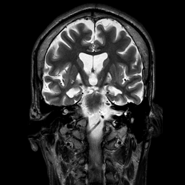 Under general anesthesia, the patient underwent stereotactic implantation of quadripolar electrodes (lead model 3387, Medtronic, Minneapolis, MN) in the Voa bilaterally, using MRI-guided stereotactic surgery (Leksell-G frame, Elekta, Stockholm, Sweden) and macro electrode stimulation (using the Leksell Neuro-Generator, Elekta, Stockholm, Sweden) to rule out side effects caused by proximity to the posterior limb of the internal capsule under controlled general anesthesia.