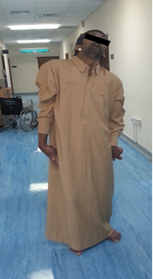 Figure 1 Pre-operative condition showing opisthotonic position in the bed, with retro and laterocollis.
