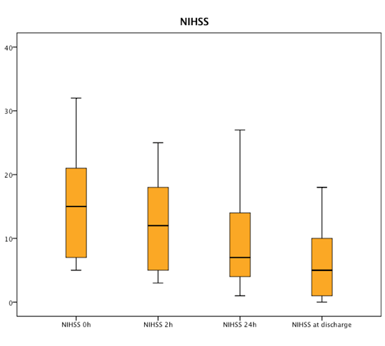 Since there was no preset protocol, the type of treatment was decided by the treating stroke medical team. All patients were admitted to a specialized stroke unit with a trained medical and nursing team.