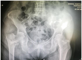 Figure 2 84-year old female PD patient with intertrochanteric fracture of her right hip, after fall in her house.