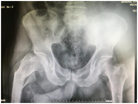 Figure 1 68-year old male PD patients with cervical femur fract+ure of his left hip. The fall happened in an institute. This patient was also receiving antipsychotic medication.