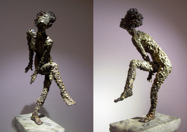 The motor activity of the human body has universal and very individual features. Decisive objective factors such as gravitation, external space circumstances (including social), health or disorder and fatigue are complemented by stage of development (depending usually on age), individual abilities (including height, weight, coordination), motivation, emotion, knowledge, experience, imagination, mood, obsessions and habits. Among clinical aspects, we can list: skeletal defects, arthropathies, myopathies, dystrophies, movement disorders such as spasticity with plegia or paresis, cerebellar Parkinsonian syndromes, athetosis, dystonia, chorea, balism, tremor, tics, compulsive obsessions, pain, proprioception disturbances. It is obvious that perception of human motor activity depends on many other features, such as the occupation of recipient for instance. Then the interpretation of them will be different. Making small sculptures showing the human body in special movement, I’m waiting for different pereception and interpretation of them. Neurologists suggested different diagnoses than orthopedists and I observe a different reception from groups of sculptors, painters, dancers or movie makers.4-6
