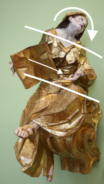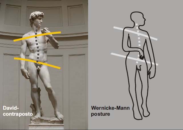 Motor pattern changes after a stroke as demonstrated by Wernicke-Mann posture (so different than classic contrapposto) Figure 2, lets us establish “strassen diagnosis” before neurological examination. More controversial is the comparison of the Wernicke-Mann posture with some Baroque sculptures, where parallel positioning of both - pectoral and pelvic girdles is very common. We can then discuss the motor pattern of an allegorical figure from the Hodovica church whether she is post stroke, dystonian or tetanic, because of the girdle’s positioning, retrocollis, neck rotation and palm arrangement. The fantastic imagination of Johann Georg Pinsel (an active sculptor in Eastern Galicia in the XVIII century), induces anxiety and an enigmatic impression to treat the person shown in Figure 3, as a clinical case. Independently from the suspected diagnosis, this, difficult to recognise, motor pattern, suggests special abilities of the person figured. The author refers to words of Isaiah the Prophet, that the afflicted means chosen by the Lord (6), and for popular religion that the sick have special abilities through contact with ghosts. There are many examples that motor disturbances not only limit, but force an alternative way to execute and be active in spite of handicap. Development of an alternative motor pattern is the chance Figure 4.