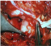 Figure 5 Under microscopic control the adherent lower division of facial nerve1 was freed from the deep lobe tumour.