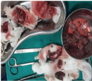 Figure 6 Resected specimen: Superficial lobe of parotid1, deep lobe of parotid2, parotid tumour mass3, lymph nodes4, skin5, part of SCM6 and post belly of digastrics muscle7.