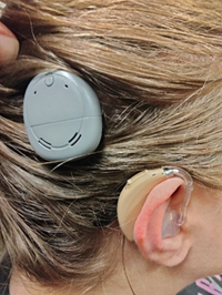 Figure 1 Electrical-acoustic stimulation plus. The Kanso one sound processor cochlear implant and the Phonak Naida Paradise 90 UP in one ear simultaneously.