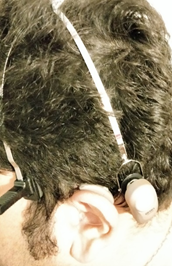 Vibration-acoustic stimulation (VAS) and vibration-electrical stimulation (VES) are the other two modalities used in this study. VAS is a combination of one bone and one air conduction hearing aid, placed simultaneously in one ear and/or two air and two BCHAs placed simultaneously on both ears for patients who suffer from bilateral hearing loss (Figure 2). The bone and air conduction hearing aids are two separate devices that should be adjusted differently but can be equalized together.14