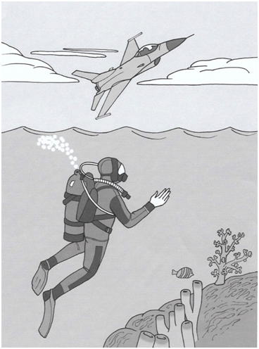 Figure 2 Cartoon depicting that alternobaric vertigo can occur in scuba divers and airplane pilots during ascent. Adapted from “Case Report: Persistent Alternobaric Vertigo at Ground Level due to Chronic Toynbee phenomenon.” by Bluestone CD, Swarts JD, Furman JM, et al. 2012, Laryngoscope, 122(4):7.