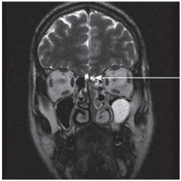A 15years old girl was referred to the ENT Department of our hospital with a history of a lifelong impossibility to perceive smells She also complained of abundant rhinorrhea and occasional headaches. She didn’t have any relevant family history and had a normal physical and psychological development. Rhinoscopy and fiberoscopy showed no structural abnormalities, no septal deviation, polyps nor any other inflammatory findings that could justify the symptoms. The olfactometry using the University of Pennsylvania Smell identification Test (UPSIT) described a total anosmia. Magnetic Resonance Imaging (MRI) found the absence of olfactory bulbs and a hypoplasia of both olfactory sulcus, more severe on the left one (Figure 1). Due to these findings, were referred our patient to the Endocrinology and Gynecology Departments of our hospital, where they determined a normal hormonal and sexual development. Thus the diagnosis of isolated congenital agenesis of the olfactory bulbs and hypoplasia of olfactory sulcus was made.