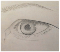 It was felt that the scars were too close to the medial canthi for a Z- or V-to-Y-plasty and an alternative, although uncharted solution for the specific defect was chosen. Two FTSG were harvested under general anesthesia from the left post-auricular matching colored area. The scars were released with a horizontal incision of approximately 7mm and the skin undermined (Figure 3A&3B). The fat was carefully removed from both grafts and they were fashioned to match the defects and then sutured and secured with cotton bolsters in the usual manner. Fortunately the procedure was successful (Figure 4,5A&5B) and almost more importantly warded off the cancelling of the wedding.