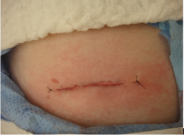 Figure 2B Sutured incision at the level of seventh costal cartilage on right hemi-thorax were get the costal graft.