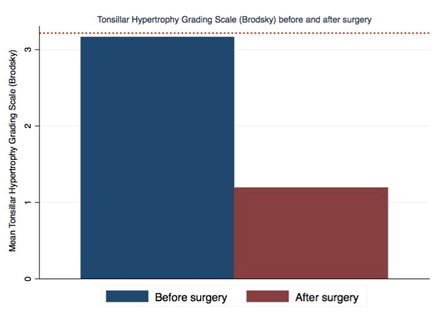 Effectiveness outcomes: Variation in pre and postoperative tonsils size (Brodsky scale), postoperative roncopathy maintenance and postoperative suspicion of apnea.