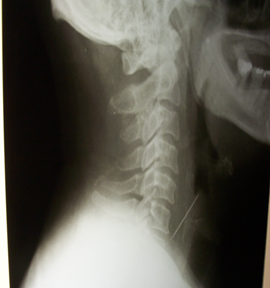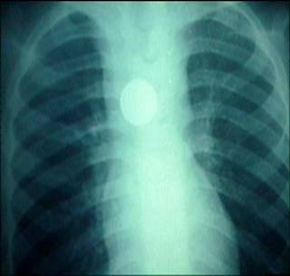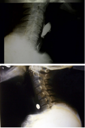 Image 3 & Image 4 The same radiographic views are made and the stoppage of the swab inside the esophagus is observed.