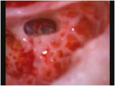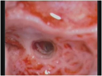 Round window electrode insertion has been noted for maximizing proper placement of the electrode in the scala tympani with evidences in the literature suggesting increased chances of scala vestibuli insertions and damage to the intra cochlear structures with more anteriorly placed conventional cochleostomy.5 The Round window membrane (RWM) is placed at around 900 angles to the oval window, has a bony over hang (niche) and is conical in nature with the horizontal postero-superior part which is closure to the osseous lamina and a vertical membranous antero-inferior part along which the electrode array is inserted.11,12