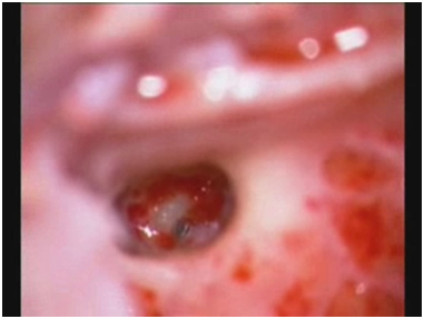 The round window visibility was graded as Grade I (Figure 1): >50% of the round window membrane is visible. Grade II (Figure 2): 25% to 50% of the round window membrane is visible. Grade III (Figure 3): <25%, i.e. only a glimpse of the round window membrane can be seen and Grade IV (Figure 4): Round window membrane is not visible. The same grading system was followed in both the centers uniformly by the two surgeons (author 1 and 2). This classification was used and types and numbers were recorded in both the institutes and later they were compared and correlated for validation. The Personnel who analyzed the data was blinded about the centers.