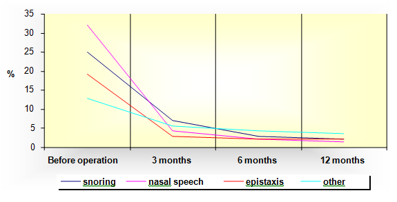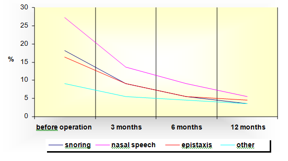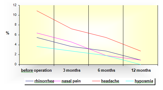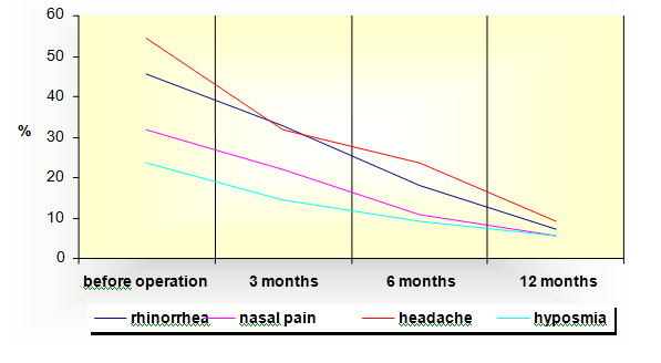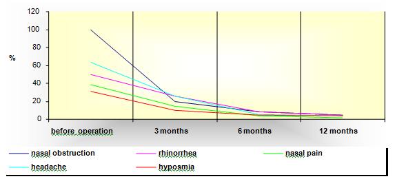 In this study we have evaluated the results before and after the operation in several follow-up periods. This information is useful both for the surgeon and the patient because it provides realistic expectations on the benefit of the operation. By developing the scale on the intensity of the nasal symptoms we wanted to help the surgeon in his or her expectations in the period after the operation. Thus, besides the accurate assumption and monitoring before the operation, attention should be paid to the intensity after the operation and accordingly use additional treatment if necessary.