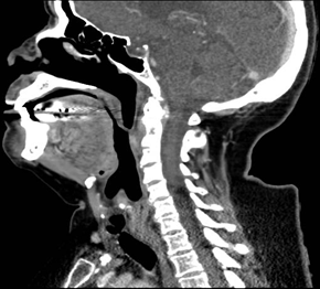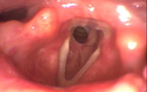 A 75-year-old female patient with no known pathological history, no surgical history. He came to our consultation referred by the pulmonology service due to progressive inspiratory dyspnea, laryngeal stridor with effort and rest, without dysphonia of 2 years of evolution, previously ruling out pathologies by pulmonology and cardiology. On physical examination, a nasofibrolaryngoscopy was performed, visualizing decreased subglottic lumen with good mobility of the vocal cords, normal mucosa and no laryngeal lesion. A stroboscopy is performed, visualizing subglottic stenosis of more than 60% of the glottic lumen (Figure 1), confirming with Computed Axial Tomography (Figure 2), reporting an infraglottic membrane that conditions slight reduction of the airway with the presence of a false lumen of 10 x 3 mm on the left side and 3 x 2 mm on the right side of the airway. In addition, complementary analytical studies to rule out inflammatory diseases as a possible cause, these being negative. He was scheduled to perform tracheostomy plus laryngeal microsurgery with CO2 laser resection and topical Mitomycin C. Pathological anatomy sample is sent reporting Fibro-leukocyte material, Subglottic Lesion. Currently exhaustive control by outpatient, patient is without dyspnea, without stridor and decannulated with more than 1 year post-surgery.