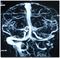 Patient was admitted and started on empirical intravenous antibiotics. Mantoux test was negative. An attempt of lumbar puncture was unsuccessful. High Resolution Computed Tomography of temporal bone was suggestive of an ill defines iso-dense heterogeneously enhancing lytic expansile lesion involving left jugular bulb causing erosion of squamous part of temporal bone, clivus, mastoid part of temporal bone with thrombosis of left sigmoid sinus and internal jugular vein (Figure 1). Post contrast Magnetic Resonance Imaging of brain revealed an ill-defined moderately heterogeneous enhancing lesion of left jugular bulb causing erosion of squamous part of occipital bone and extending into pre and para vertebral space up to level of C1 vertebra and causing destruction of mastoid part of temporal bone with thrombosis of left sigmoid sinus and internal jugular vein (Figure 2). Cranial Magnetic Resonance Imaging venography showed thrombosis in left sigmoid sinus and internal jugular vein (Figure 3). Blood investigations ruled out the presence of hypercoagulable state in our patient.