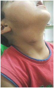 Figure 1 Case 1:- Preoperative picture showing swelling at the anterior border of right sternocleidomastoid.