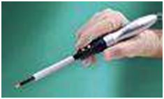 The harmonic scalpel Figure 2 can be used to perform an extracapsular tonsillectomy (Ethicon Endo-Surgery Inc. Cincinnati, OH). It uses ultrasonic energy to vibrate its blade at 55,000 cycles per second. The vibration transfers energy to the tissue, providingSimultaneous cutting and coagulation, so, typically, no additional instrument is needed for hemostasis. The components of the device include a generator, a hand piece, and a disposable blade. A high-frequency power supply provides energy to the hand piece. The blade oscillations dissect tissues by creating intra-cellular cavities as pressure waves are conducted through the tissues. The expansion and contraction of these cavities results in the lysis of cellular connections, resulting in tissue dissection (Figure 2).