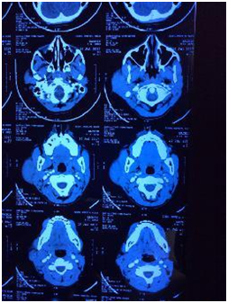 On examination, the swelling was around 4cmx 2cm, in the left parotid gland area, pruriginous, soft in consistency, nonpulsatile, nontender on palpation. Ear canal and tympanic membrane was normal. Facial nerve examination was normal. Nose and throat examination were normal.
