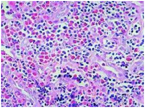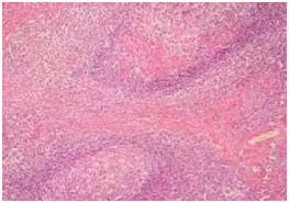 Microscopically, there are lymphoid nodules with marked infiltration of eosinophils, formation of eosinophil micro abscesses.