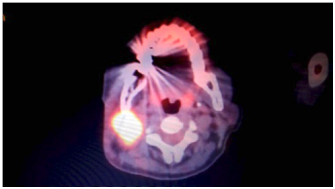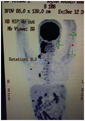 Figure 2 PET scan of our patient showing primary malignant salivary gland tumor with local and distant metastasis.