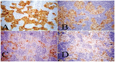 Figure 6 Positive Immunostaining of PLEC, AE1 (A), cytokeratin (B), EMA (C), p63 (D).3