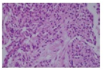 The mass was removed using a straight blakeselly forceps and the mucoperichondrium was stripped off from the area of attachment, exposing the underlying cartilage. The edges of the created wound were then cauterized using unipolar cautery (Figure 2). Packs were removed the following day. Histopathology examination revealed lobular capillary haemangioma (Figure 3). Three months postoperative period has been insignificant.
