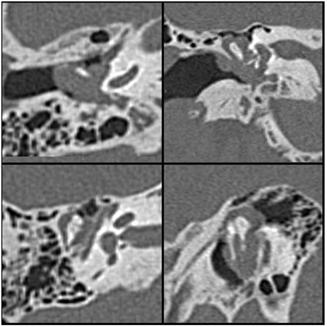 MEA are benign, slow-growing tumors derived from the middle ear mucosa that have a nonspecific clinical presentation. The age of presentation is generally between the third and eighth decades, with a mean age of 45years old and no sex preponderance.4 Patients usually present with conductive hearing loss, ear fullness, tinnitus, facial muscles weakness or otalgia without a history of otological disease. These tumors are typically slow-growing and have an indolent onset which can delay the diagnosis.1‒10 The otoscopic examination shows a normal tympanic membrane with a grayish white or pink retro tympanic mass usually located in the promontory or hypotympanum, although it can be also found in the epytimpanyc area.2,4 The hearing tests reveal a conductive hearing loss in the affected ear.