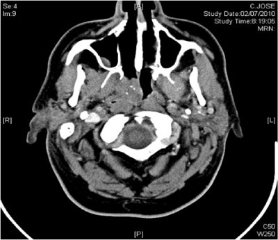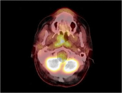 A 61-yar-old man was referred to our Head and Neck Surgery Department after completion of external radiotherapy treatment with the diagnosis of persistent nasopharyngeal T2N0 well differentiated carcinoma.