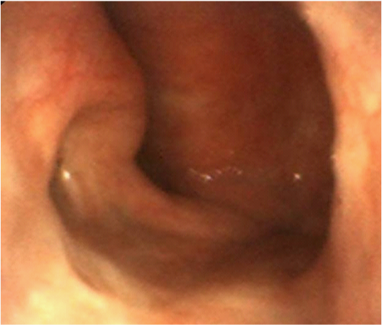 Four years after, the patient refers no symptom but xerostomy due to radiotherapy and presents a normal exploration of the right ear and the nasopharynx, with a scar in the inferolateral aspect of the right choana and normal movement of the nasopharyngeal opening of the Eustachian tube (Figure 6).