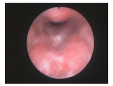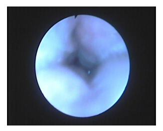Figure 5 Anterior–posterior pattern of pharyngeal collapse in which a collapse due to anterior pharyngeal collapse against the posterior pharyngeal wall is detected (the base of the tongue against pharyngeal wall during the DISE).