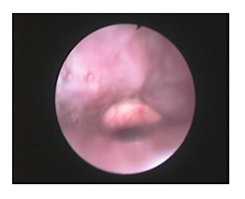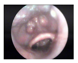 Repeated bolus infusion of propofol (Diprivan) at 1.5mg/kg was given to each patient until sleep begins which was also noticed by the start of snoring with close monitoring of the oxygen saturation doing jaw thrust when obstruction or oxygen desaturation occurred. Anesthetic depth was of key importance. The target depth of sedation was the transition from consciousness to unconsciousness (loss of response to verbal stimulation). Because individuals have differential susceptibilities to propofol, the required dosage can vary widely. Slow stepwise induction was required to avoid over sedation. Deeper levels of sedation were associated with progressive decreases in upper airway dilator muscle tone and neuromuscular reflex activation that both increase airway collapsibility, and the transition to unconscious sedation may be a closer approximation to natural sleep. Once the patient has reached a satisfactory level of sedation, a flexible endoscope lubricated and coated with anticondense was introduced into the nasal cavity. The nasal passage, nasopharynx, velum, tongue base, epiglottis, and larynx were observed. The levels of snoring and/or obstruction were assessed.
