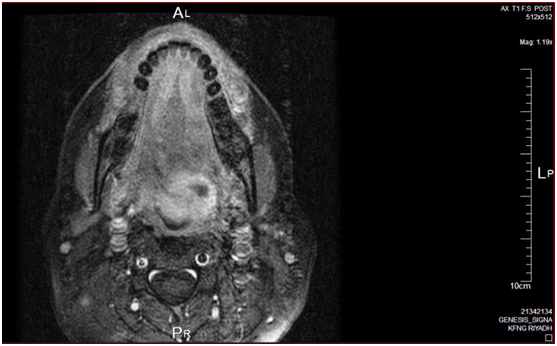 The local multidisplinary team discussions revealed tow different approaches either wide local excision and selective neck dissection or mandibulotomy glossectomy, free flap reconstruction and bilateral neck dissections to ensure complete tumor excision and lymph node clearance .This rationale has been supported by several other authors who have advocated wide tumor margins as intraoral MEC tends to be more aggressive, with recurrence rate of up to 30%-40% with high-grade lesions.4,11,12