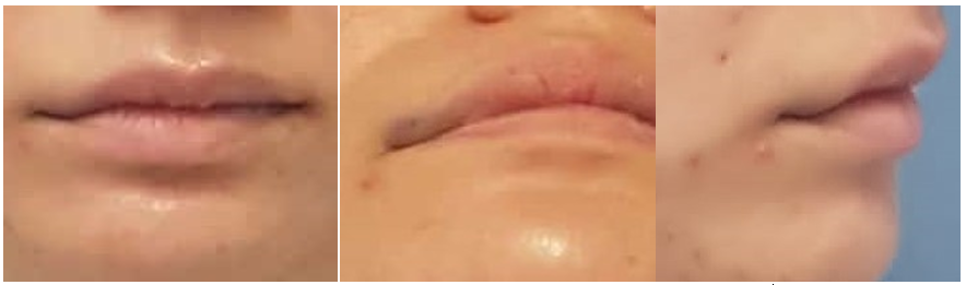 Figure 1A-1C Preoperative (frontal, base, and side view). Asymmetry of the upper lip and on the right corner of mouse. .
