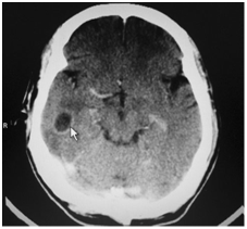 In cases of brain abscesses, although the MRI gives better detail regarding the abscess itself, a CT scan gives valuable information about bony erosion of the mastoid, and can help in determining the cause of the abscess and the most appropriate treatment options (Figure 6–9).