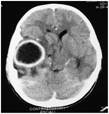 In lateral sinus thrombosis CT and MRI are the investigations of choice in making diagnosis. CT scan is useful in demonstrating the classic ‘delta sign’ of perisinus dural enhancement and filling defect of the lateral sinus (Figure 11) and also can help to rule out associated extracranial or intracranial complications. In study by Viswanatha et al, ‘delta sign‘was seen only in 50% of the cases.