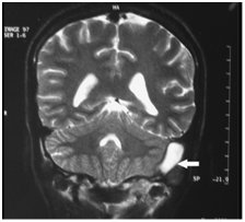MRI is more sensitive than CT in detecting the thrombus. MRI can show increased signal intensity of the thrombus and detect lateral sinus thrombosis not identified on a routine CT (Figure 12). It shows blood flow, sinus obstruction and subsequent reversal of flow.